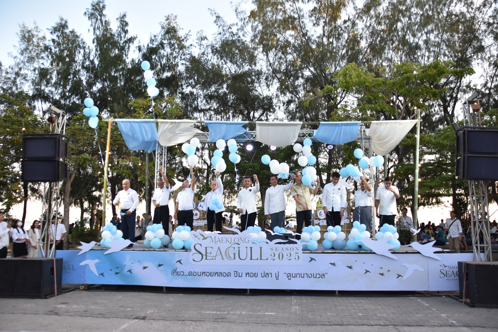 นางสาวลัดดาวัลย์ สันติภิญโญเลิศ อุตสาหกรรมจังหวัดสมุทรสงคราม มอบหมายให้ นายธนาธิป เพชรสุด หัวหน้ากลุ่มนโยบายและแผนงาน เข้าร่วมงานงาน MAEKLONG SEAGULL SEASON 2025 : เที่ยวดอนหอยหลอด ชิมหอยปลาปู ดูนกนางนวล โดยมี นายชยชัย แสงอินทร์ ผู้ว่าราชการจังหวัดสมุทรสงคราม เป็นประธาน พร้อมด้วย นายกรกฎ วงษ์สุวรรณ นายรนัสถ์ชัย พุ่มเจริญ รองผู้ว่าราชการจังหวัดสมุทรสงคราม หน่วยงานราชการ และประชาชนทั่วไป เข้าร่วมกิจกรรมดังกล่าว เพื่อส่งเสริมการท่องเที่ยวบริเวณดอนหอยหลอดในช่วงฤดูกาลนกนางนวล อพยพกระตุ้นนักท่องเที่ยวให้เดินทางมาท่องเที่ยว รับประทานอาหารทะเลบริเวณดอนหอยหลอด สร้างรายได้ให้กับชุมชนและประชาชนในพื้นที่ และประชาสัมพันธ์ยุทธศาสตร์การพัฒนาจังหวัดสมุทรสงครามที่มุ่งสู่ “เมืองแห่งความสุข ท่องเที่ยวหลากหลาย อาหารปลอดภัย ใส่ใจสิ่งแวดล้อม” ณ บริเวณศาลกรมหลวงชุมพรเขตอุดมศักดิ์ สมุทรสงคราม ตำบลบางจะเกร็ง อำเภอเมืองสมุทรสงคราม จังหวัดสมุทรสงคราม