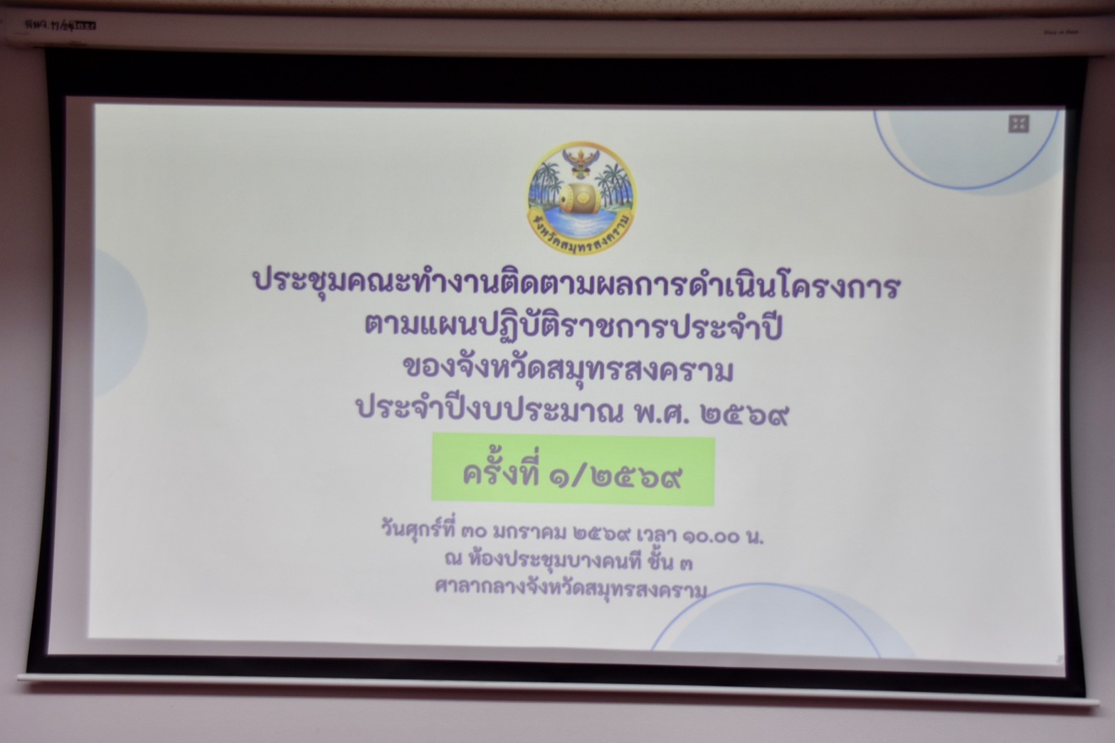 นางสาวลัดดาวัลย์ สันติภิญโญเลิศ อุตสาหกรรมจังหวัดสมุทรสงคราม เข้าร่วมการประชุมคณะทำงานติดตามผลการดำเนินโครงการตามแผนปฏิบัติราชการประจำปีของจังหวัดสมุทรสงคราม ประจำปีงบประมาณ พ.ศ. 2569 ครั้งที่ 1/2569 โดยมี นายกรกฎ วงษ์สุวรรณ รองผู้ว่าราชการจังหวัดสมุทรสงคราม เป็นประธานการประชุม พร้อมด้วย หัวหน้าส่วนราชการ ข้าราชการ และเจ้าหน้าที่ เข้าร่วมการประชุมดังกล่าว เพื่อรายงานผลความก้าวหน้าในการดำเนินงานและเร่งรัดการใช้จ่าย งบประมาณโครงการตามแผนปฏิบัติราชการประจำปีงบประมาณ พ.ศ. 2569 ให้เป็นไปอย่างมีประสิทธิภาพ ณ ห้องประชุม บางคนที ชั้น 3 ศาลากลางจังหวัดสมุทรสงคราม