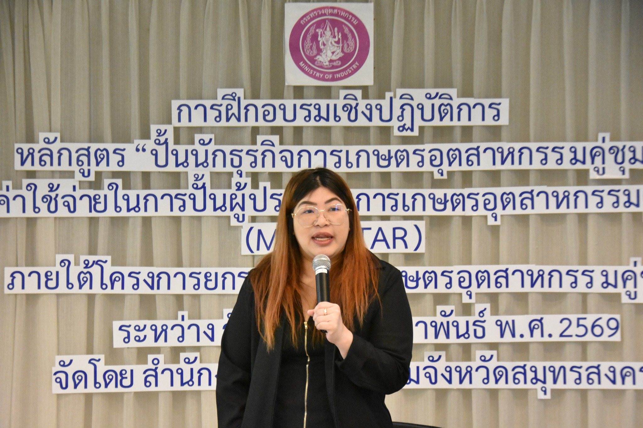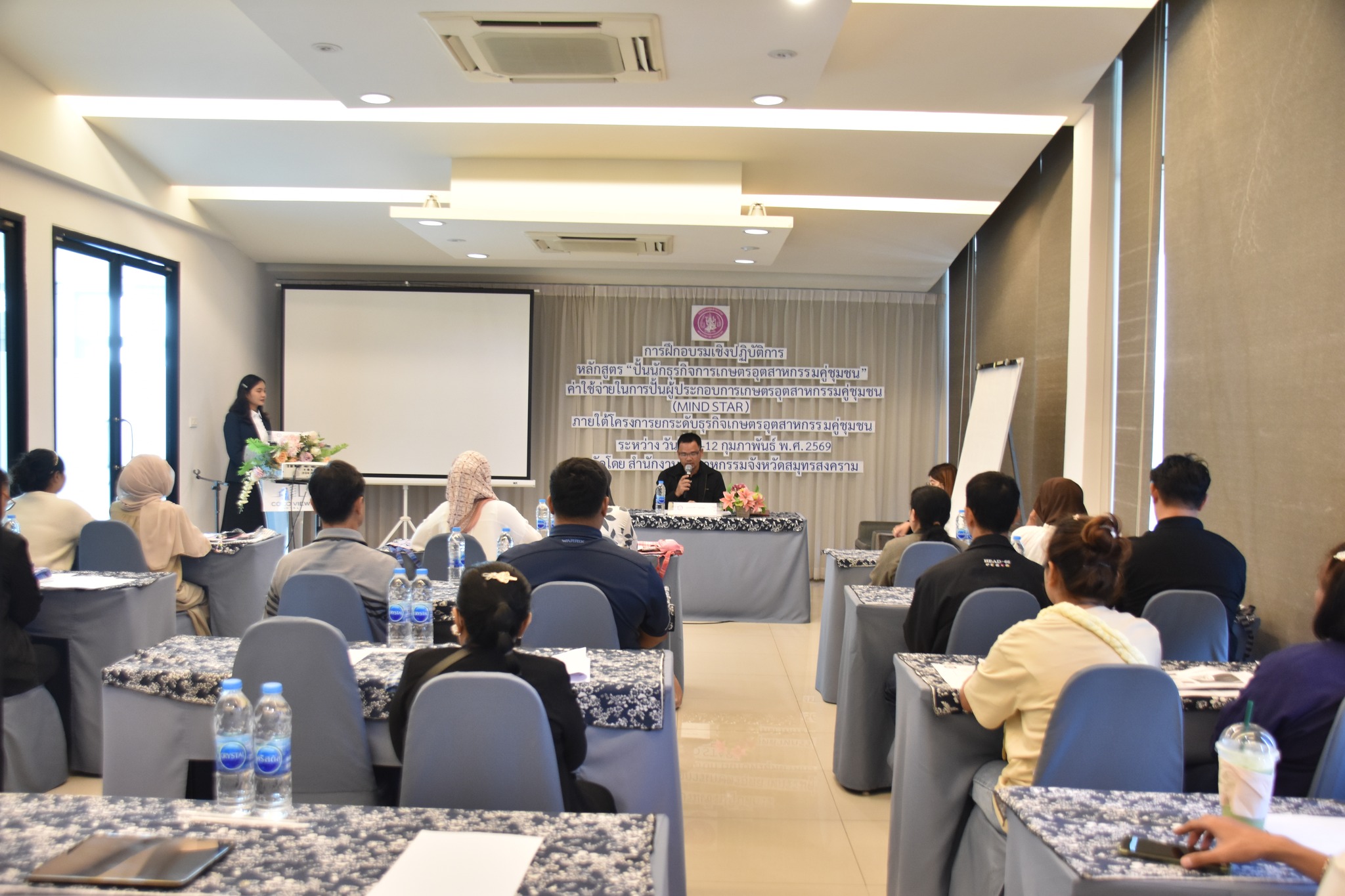 นางสาวลัดดาวัลย์ สันติภิญโญเลิศ อุตสาหกรรมจังหวัดสมุทรสงคราม มอบหมายให้ นายธนาธิป เพชรสุด หัวหน้ากลุ่มนโยบายและแผนงาน เป็นประธานในพิธีเปิด การฝึกอบรมเชิงปฏิบัติการ “ปั้นนักธุรกิจการเกษตรอุตสาหกรรมคู่ชุมชน” ประจำปีงบประมาณ พ.ศ. 2569 โดยมี นางเกสรา ไชยรส หัวหน้ากลุ่มส่งเสริมและพัฒนาอุตสาหกรรม กล่าวรายงาน และมีผู้เข้าร่วมอบรมจำนวน 22 ราย ซึ่งการฝึกอบรมในครั้งนี้ มีวัตถุประสงค์ เพื่อถ่ายทอดองค์ความรู้และพัฒนาผู้ประกอบการเกษตรอุตสาหกรรม, สร้างผู้ประกอบการเกษตรอุตสาหกรรมคู่ชุมชนต้นแบบและการเชื่อมโยงเครือข่ายรวมทั้งสร้างโอกาสให้แก่ผู้ประกอบการเกษตรอุตสาหกรรมคู่ชุมชน ทั้งนี้มีการบรรยายในหัวข้อ การเป็นผู้ประกอบการเกษตรอุตสาหกรรมที่ดีคู่ชุมชน, การตลาดสำหรับผู้ประกอบการเกษตรอุตสาหกรรม, การวิเคราะห์ธุรกิจอย่างง่ายโดยใช้หลัก 5W 1H เพื่อการตลาด และการนำเสนอสินค้าให้น่าสนใจด้วยภาพและการเล่าเรื่อง โดย ดร.ชาณิดา พิทยานนท์ ณ โรงแรมโคโค่วิว ตำบลแม่กลอง อำเภอเมืองสมุทรสงคราม จังหวัดสมุทรสงคราม
