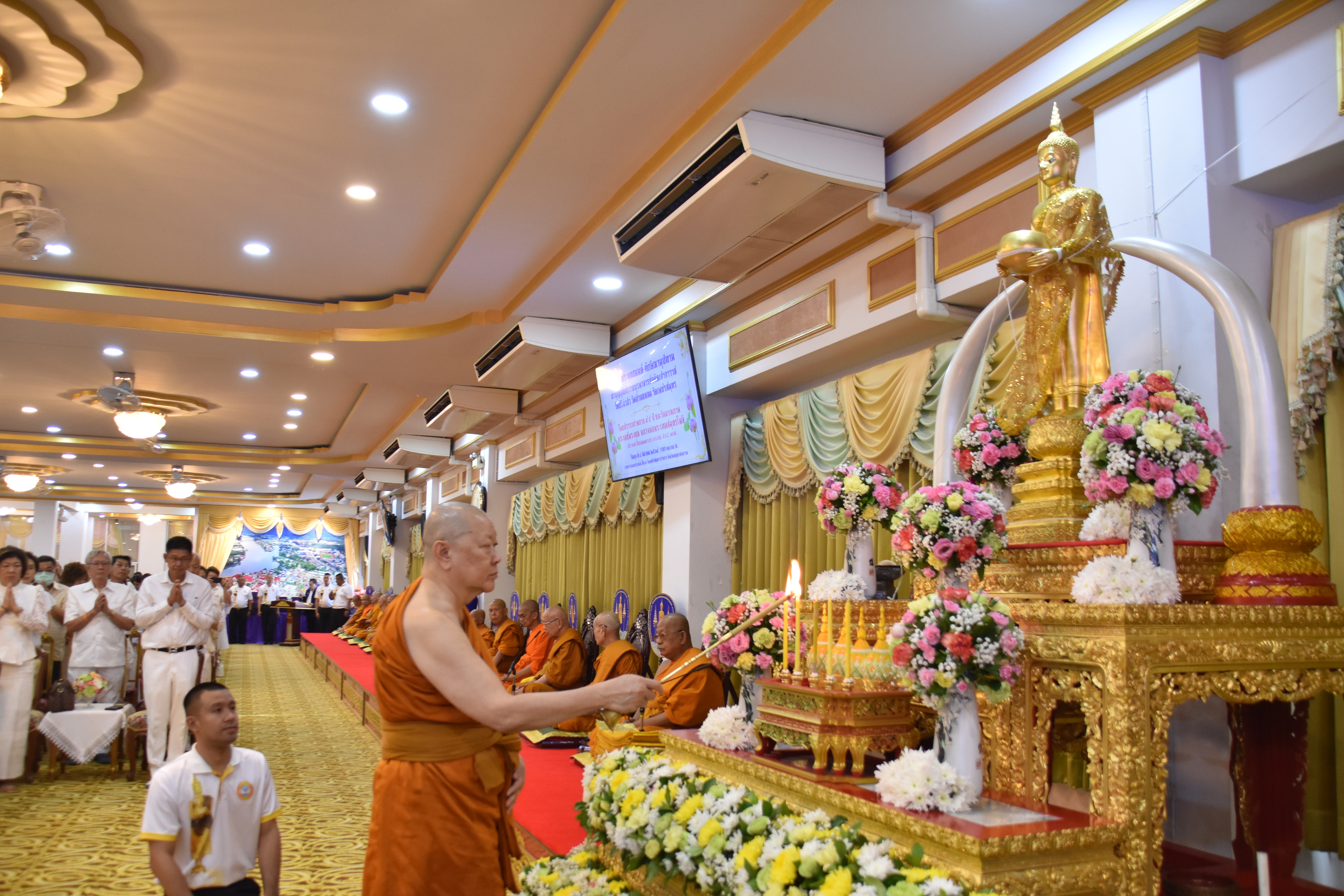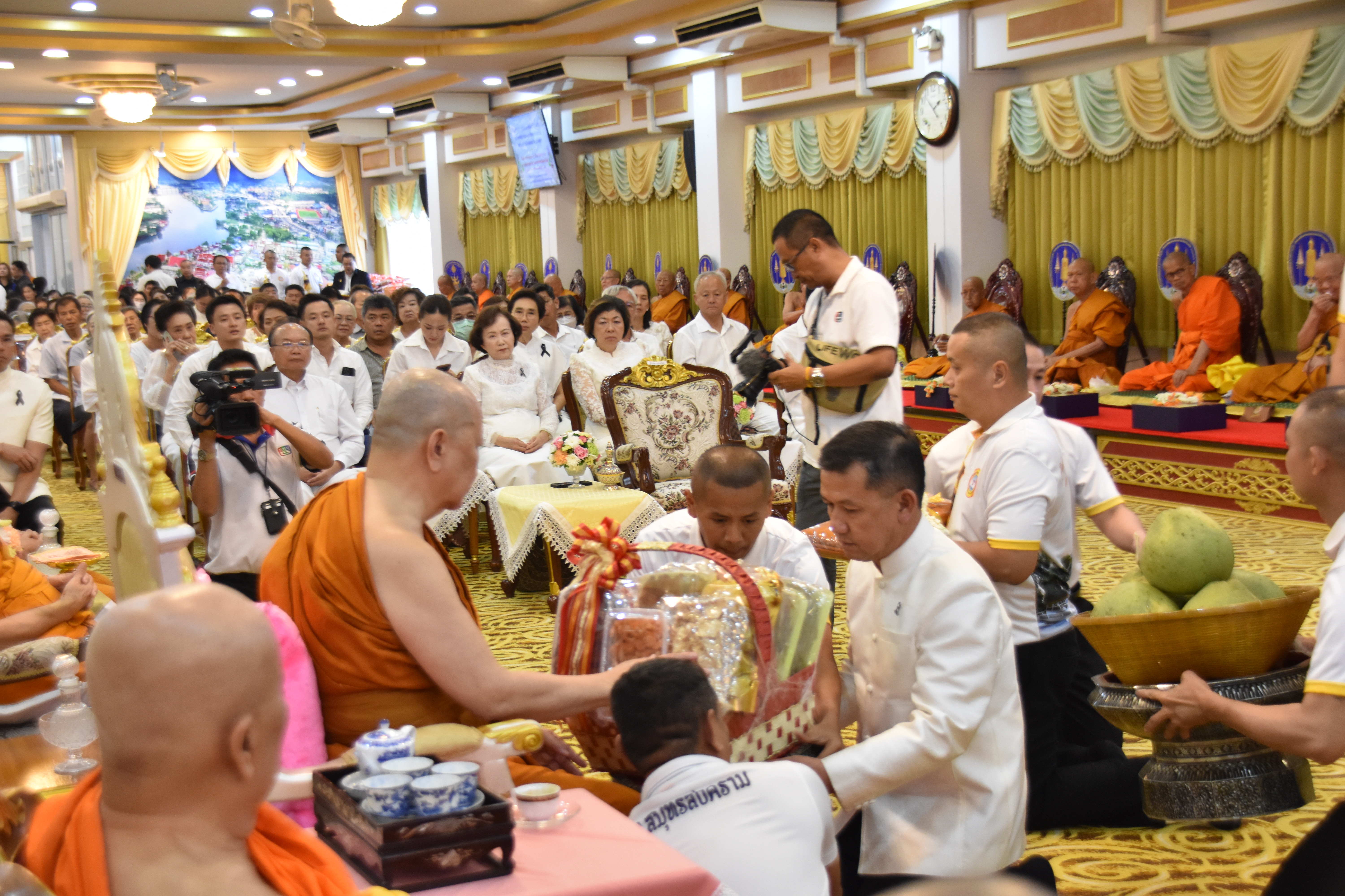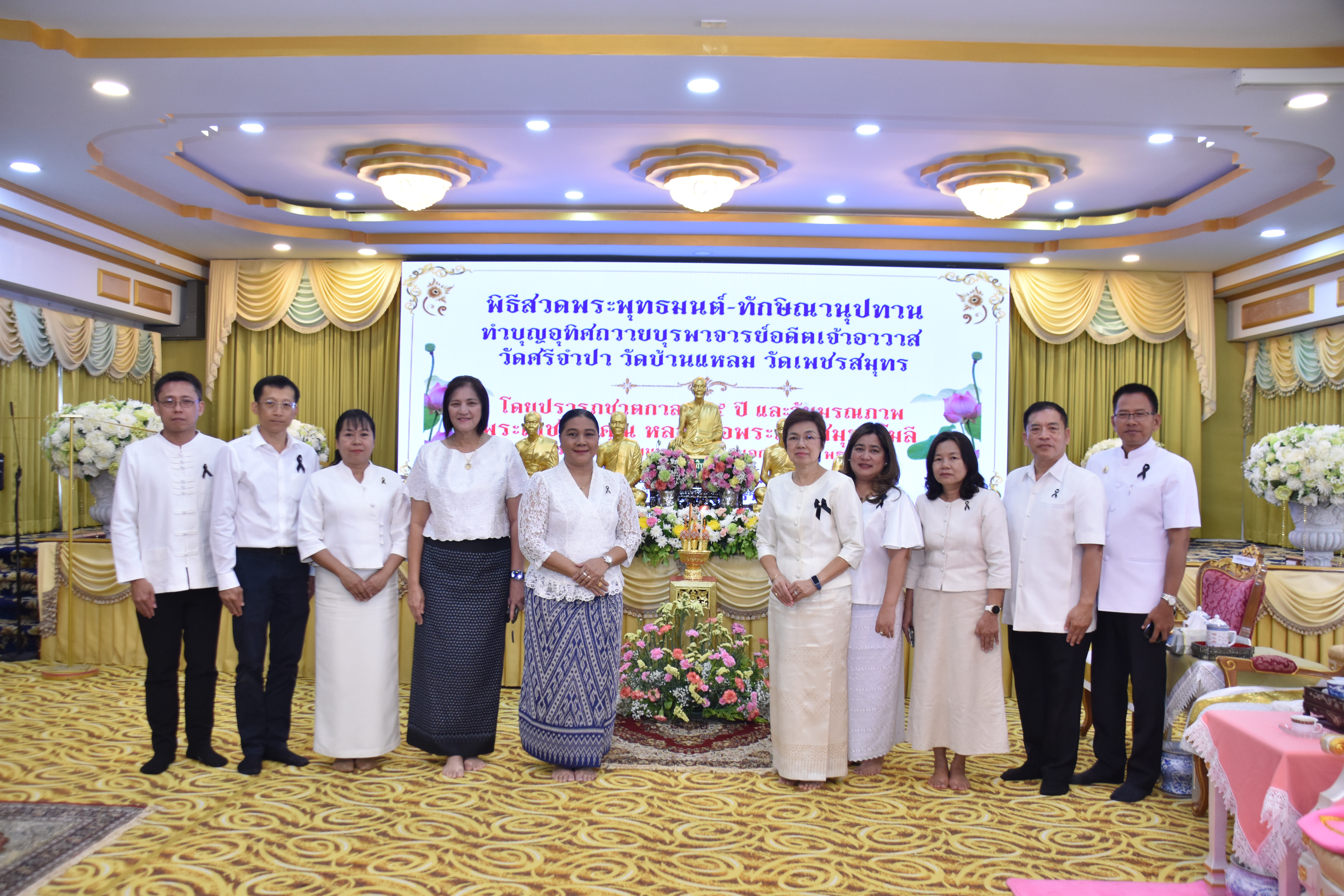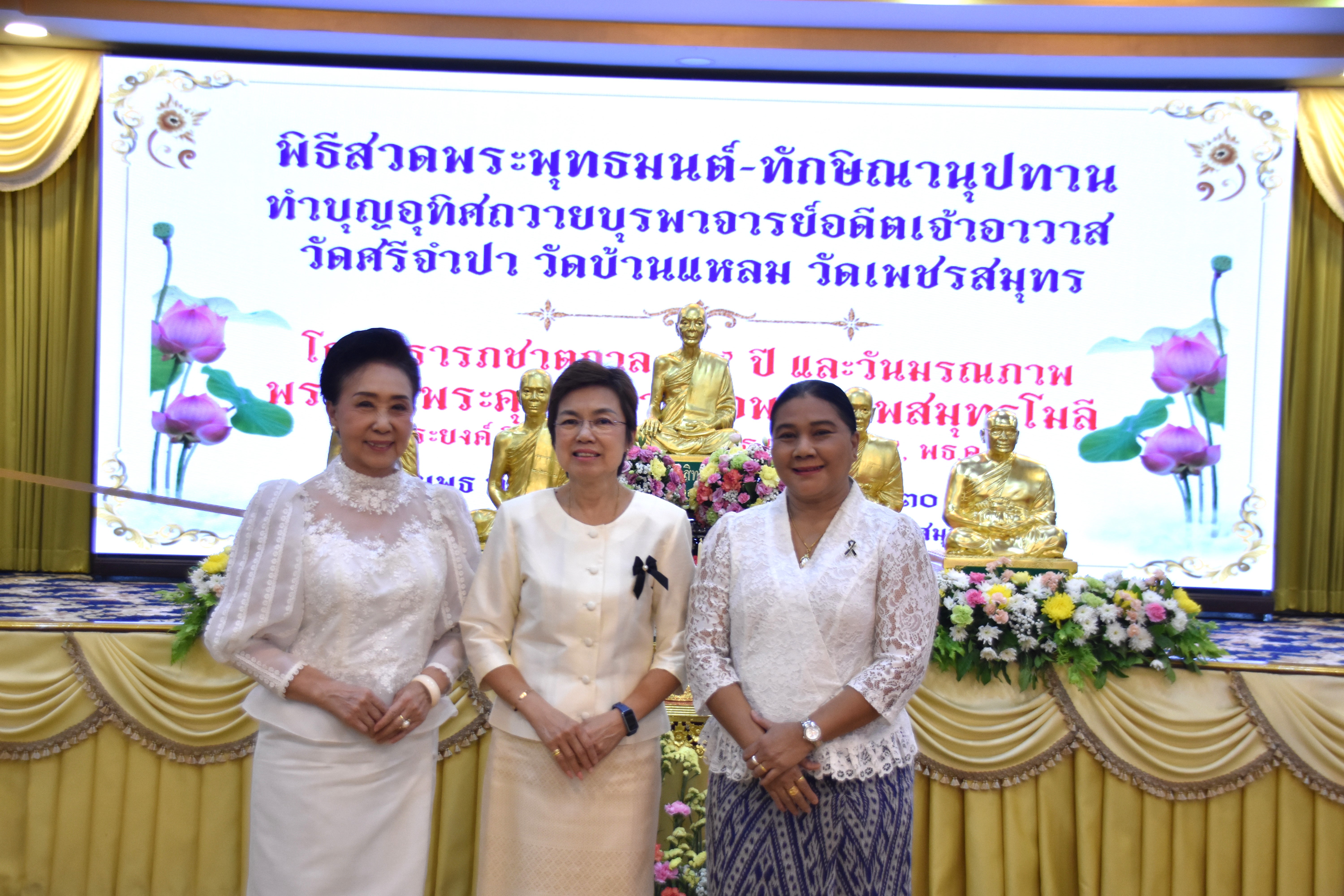 นางสาวลัดดาวัลย์ สันติภิญโญเลิศ อุตสาหกรรมจังหวัดสมุทรสงคราม เข้าร่วมพิธีถวายพระอุโบสถหลวงพ่อบ้านแหลม และพิธีทักษิณานุปทานอุทิศถวายบุรพาจารย์อดีตเจ้าอาวาสวัดศรีจำปา วัดบ้านแหลม วัดเพชรสมุทรวรวิหาร โดย ปรารภชาตกาล 95 ปี และ วันมรณภาพพระเดชพระคุณพระเทพสมุทรโมลี (ประยงค์ ปิยธมมมหาเถร ป.ธ.5, พธ.ด) อดีตเจ้าอาวาสวัดเพชรสมุทรวรวิหาร อดีตที่ปรึกษาเจ้าคณะภาค 15 โดยมี พระเดชพระคุณเจ้าประคุณสมเด็จพระมหารัชมงคลมุนี กรรมการมหาเถรสมาคม เจ้าคณะใหญ่หนกลาง วัดไตรมิตรวิทยาราม กรุงเทพมหานคร ประธานฝ่ายสงฆ์ และนายชยชัย แสงอินทร์ ผู้ว่าราชการจังหวัดสมุทรสงคราม เป็นประธานฝ่ายฆราวาส พร้อมด้วย นายกรกฎ วงษ์สุวรรณ รองผู้ว่าราชการจังหวัดสมุทรสงคราม หัวหน้าส่วนราชการ ข้าราชการ เจ้าหน้าที่ และประชาชนทั่วไป เข้าร่วมพิธีดังกล่าว ณ อาคารอเนกประสงค์ ชั้น 2 วัดเพชรสมุทรวรวิหาร ตำบลแม่กลอง อำเภอเมือง จังหวัดสมุทรสงคราม