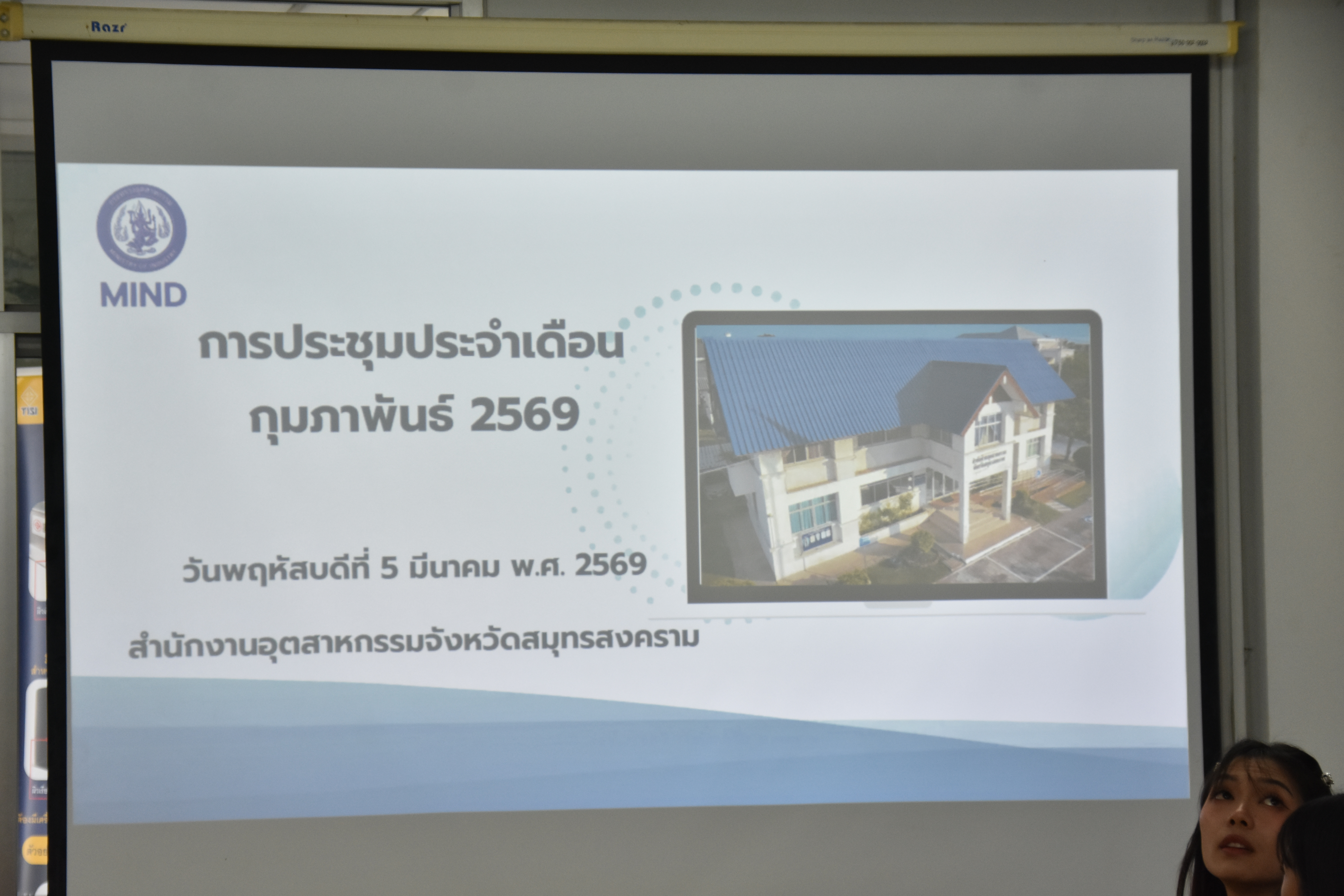 นางสาวลัดดาวัลย์ สันติภิญโญเลิศ อุตสาหกรรมจังหวัดสมุทรสงคราม พร้อมด้วย ข้าราชการ พนักงานราชการ และเจ้าหน้าที่สำนักงานอุตสาหกรรมจังหวัดสมุทรสงคราม เข้าร่วมประชุมสำนักงานอุตสาหกรรมจังหวัดสมุทรสงคราม ประจำเดือนกุมภาพันธ์ 2569 ครั้งที่ 2/2569 เพื่อชี้แจงนโยบายการดำเนินงานและติดตามผลการดำเนินงานโครงการ/กิจกรรมของกลุ่มนโยบายและแผนงาน กลุ่มโรงงานอุตสาหกรรม และกลุ่มส่งเสริมและพัฒนาอุตสาหกรรม ให้บรรลุตามวัตถุประสงค์ ณ ห้องประชุม ชั้น 2 สำนักงานอุตสาหกรรมจังหวัดสมุทรสงคราม