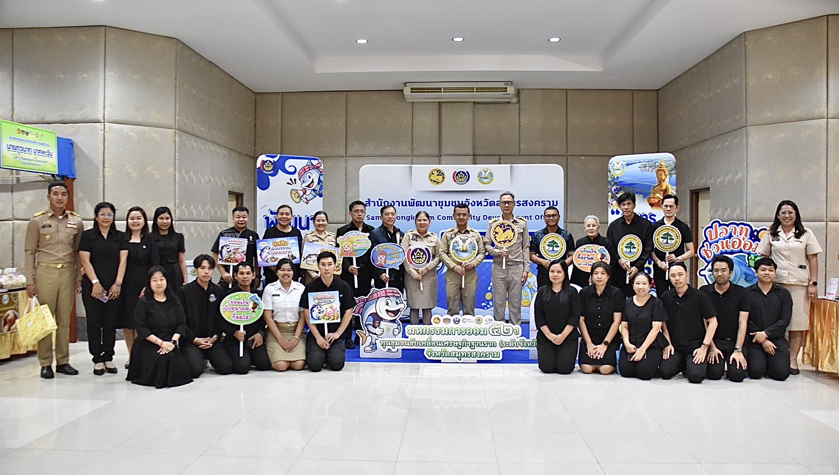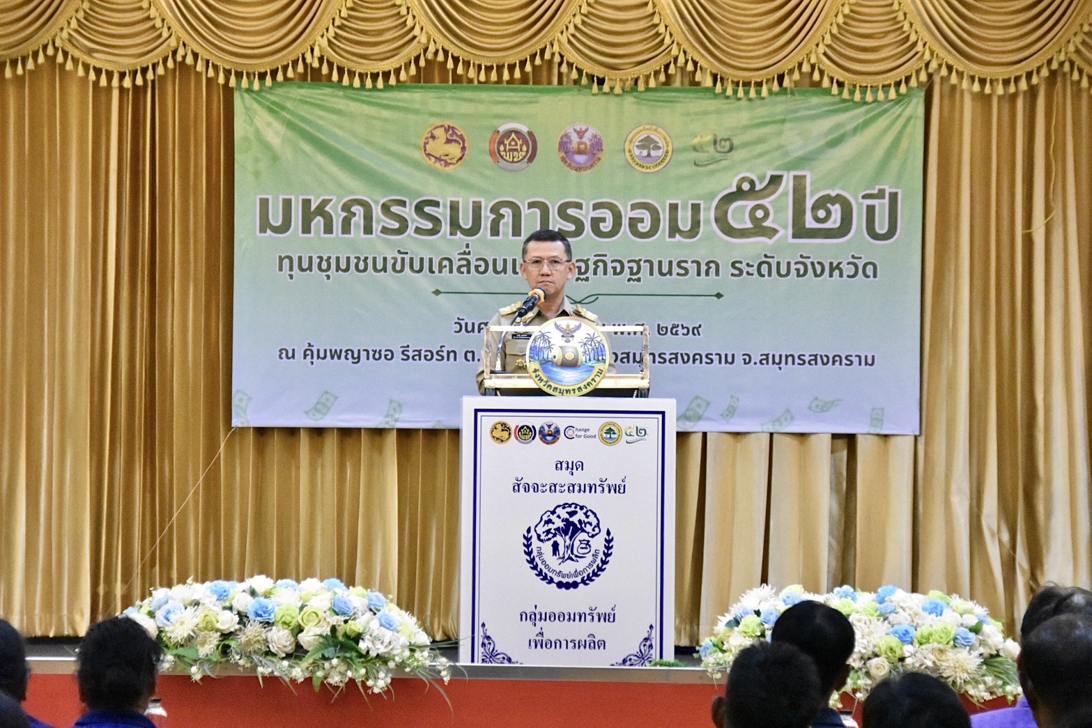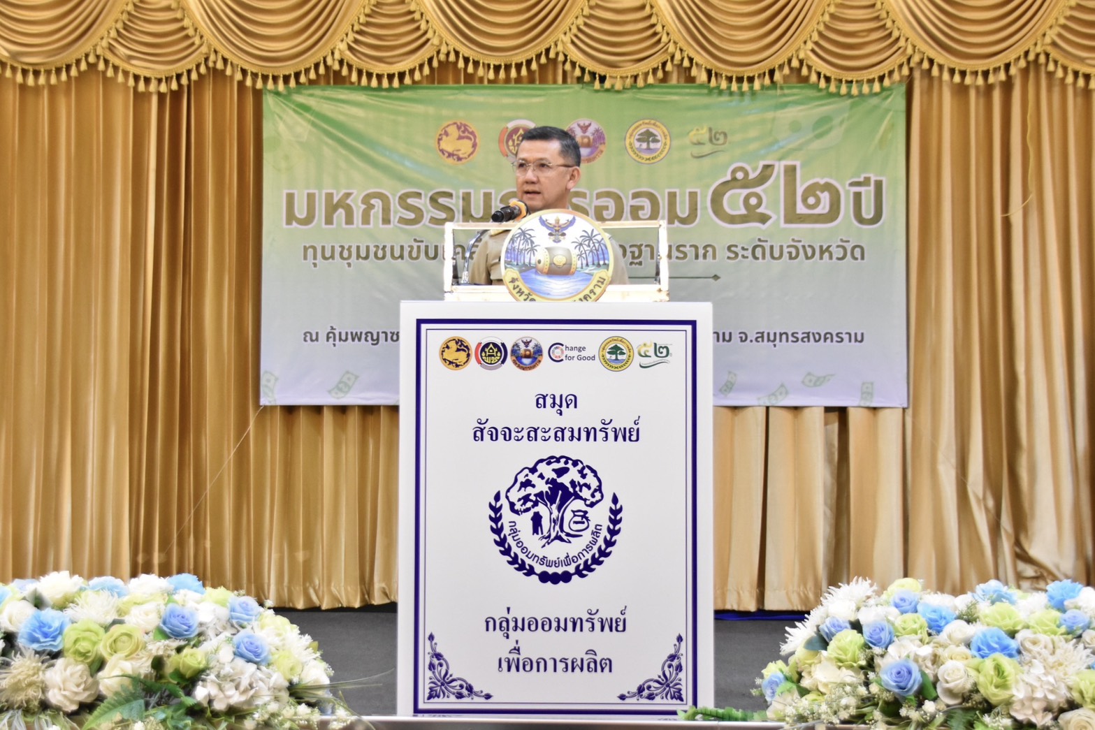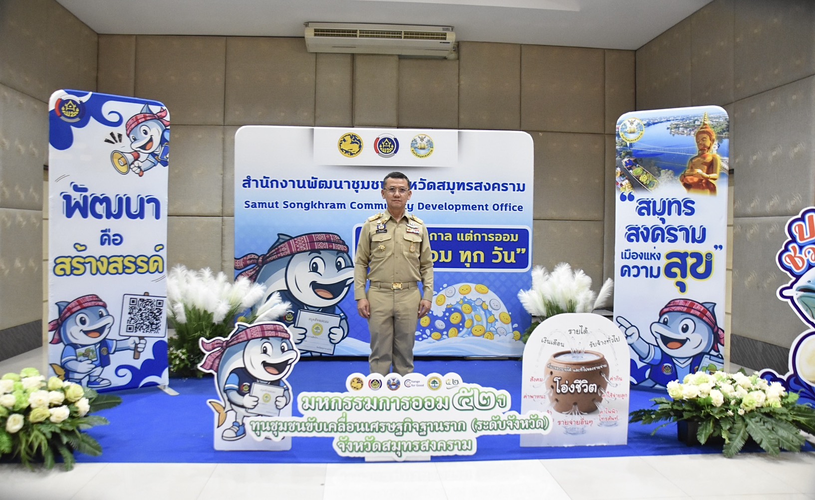 นางสาวลัดดาวัลย์ สันติภิญโญเลิศ อุตสาหกรรมจังหวัดสมุทรสงคราม มอบหมายให้ นางเกสรา ไชยรส หัวหน้ากลุ่มส่งเสริมและพัฒนาอุตสาหกรรม เข้าร่วมพิธีเปิดโครงการมหกรรมการออม 52 ปี ทุนชุมชนขับเคลื่อนเศรษฐกิจฐานราก (ระดับจังหวัด) โดยมี นายชยชัย แสงอินทร์ ผู้ว่าราชการจังหวัดสมุทรสงคราม เป็นประธานในพิธี พร้อมด้วย นายรนัสถ์ชัย พุ่มเจริญ รองผู้ว่าราชการจังหวัดสมุทรสงคราม หัวหน้าส่วนราชการ คณะกรรมการและสมาชิกกลุ่มออมทรัพย์เพื่อการผลิต หน่วยงานภาครัฐ/ภาคเอกชน และเจ้าหน้าที่เข้าร่วมพิธีดังกล่าว โดยมีวัตถุประสงค์เพื่อส่งเสริมและเผยแพร่ประชาสัมพันธ์แนวคิดการดำเนินงานของ กลุ่มออมทรัพย์เพื่อการผลิต ของกรมการพัฒนาชุมชน พร้อมทั้งสร้างความตระหนักให้ประชาชนเห็นถึงความสำคัญของการออม และการมีวินัยทางการเงิน ณ ห้องประชุมคุ้มพญาซอ รีสอร์ท ตำบลลาดใหญ่ อำเภอเมืองสมุทรสงคราม จังหวัดสมุทรสงคราม