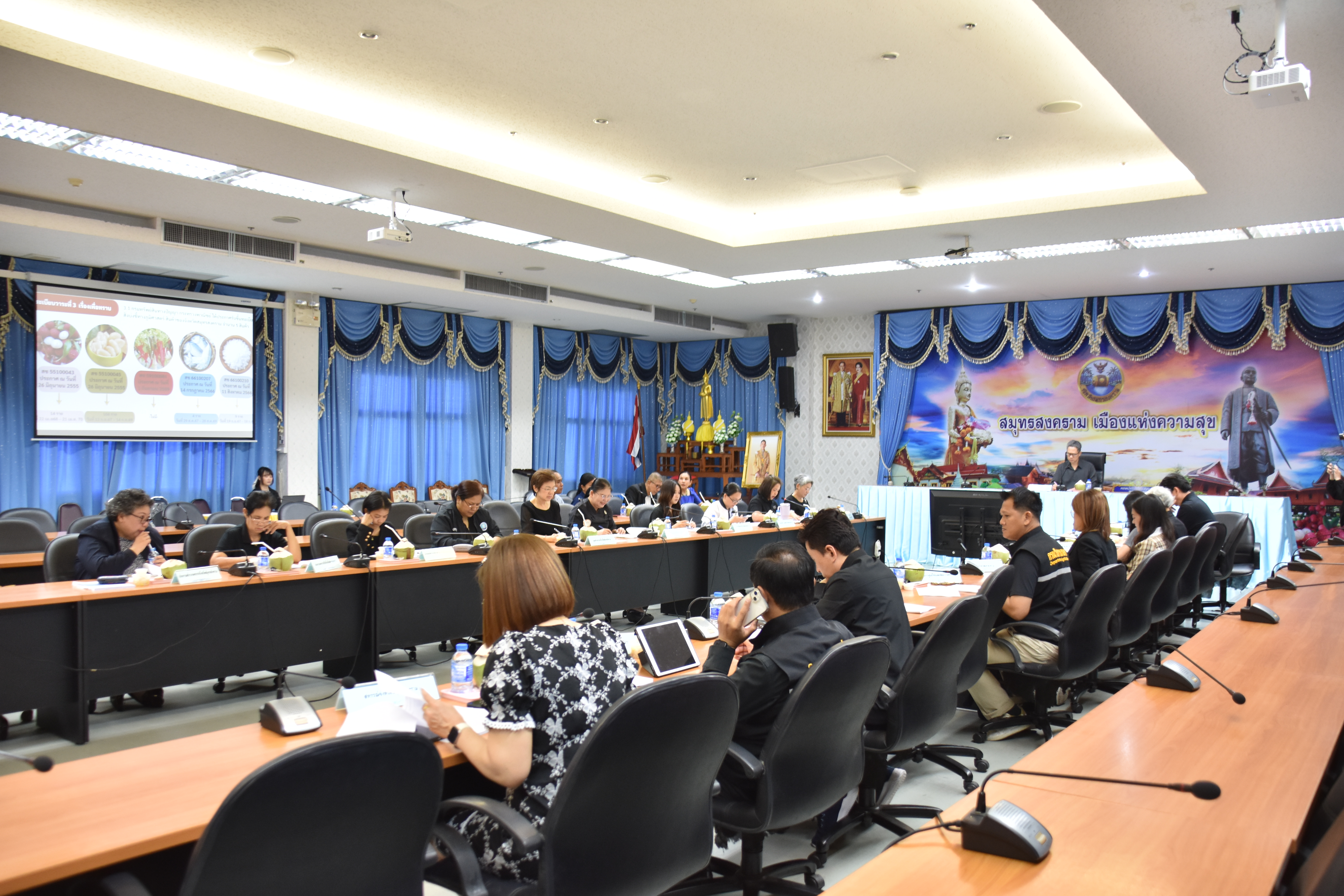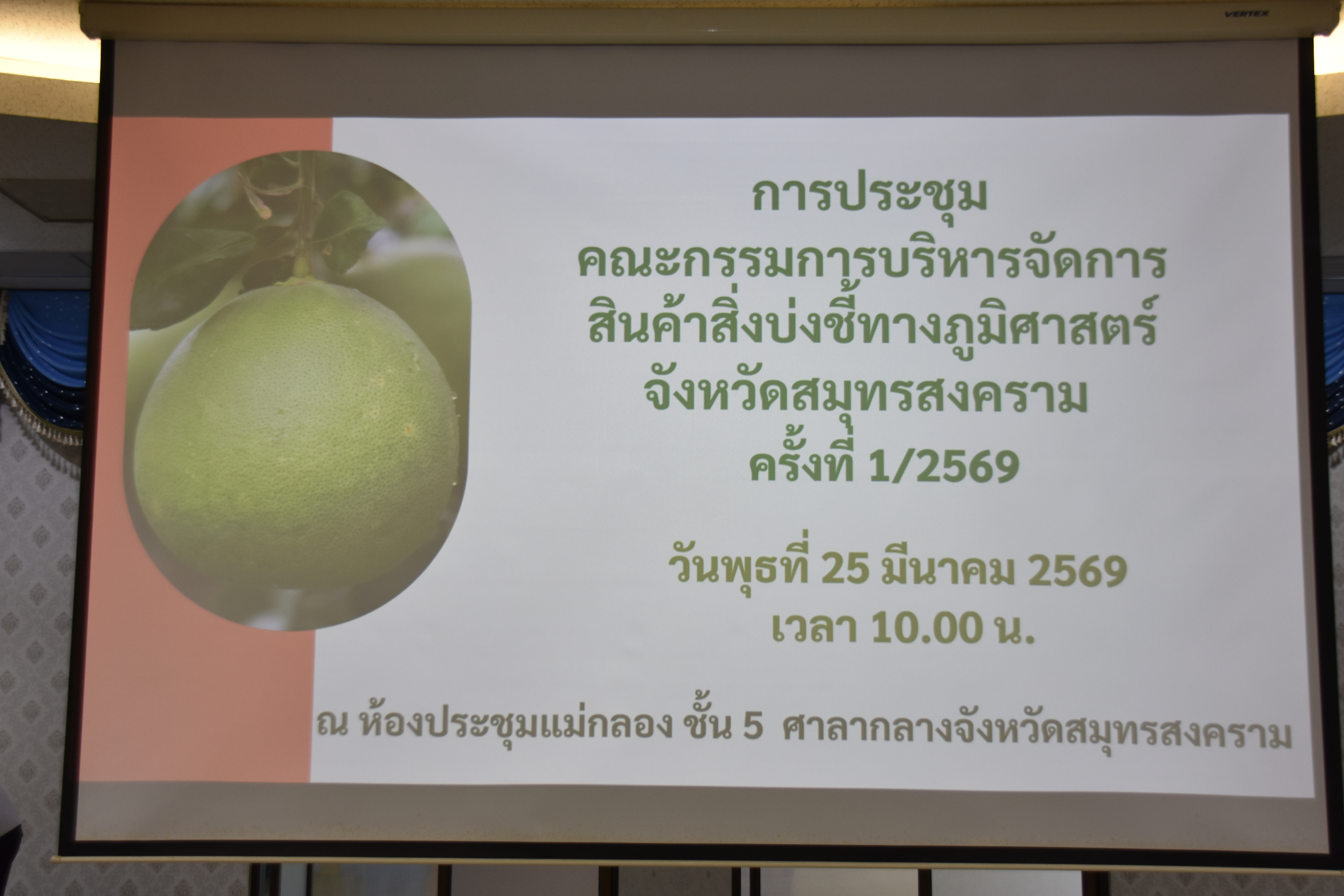นางสาวลัดดาวัลย์ สันติภิญโญเลิศ อุตสาหกรรมจังหวัดสมุทรสงคราม เข้าร่วมประชุมคณะกรรมการบริหารจัดการสินค้าสิ่งบ่งชี้ทางภูมิศาสตร์จังหวัดสมุทรสงคราม ครั้งที่ 1/2569 โดยมี นายรนัสถ์ชัย พุ่มเจริญ รองผู้ว่าราชการจังหวัดสมุทรสงคราม เป็นประธานในการประชุม พร้อมด้วย คณะกรรมการบริหารจัดการสินค้าสิ่งบ่งชี้ทางภูมิศาสตร์ เข้าร่วมการประชุมดังกล่าว เพื่อพิจารณาให้ความเห็นชอบผู้ประกอบการที่สมัครขออนุญาตใช้ตราสัญลักษณ์สิ่งบ่งชี้ทางภูมิศาสตร์ (GI) ไทย สินค้า ส้มโอขาวใหญ่สมุทรสงคราม และพิจารณาการมอบอำนาจให้แก่พาณิชย์จังหวัดสมุทรสงคราม ในการยื่นคำขออนุญาตใช้ตราสัญลักษณ์สิ่งบ่งชี้ทางภูมิศาสตร์ (GI) ไทย ณ ห้องประชุมแม่กลอง ชั้น 5 ศาลากลางจังหวัดสมุทรสงคราม