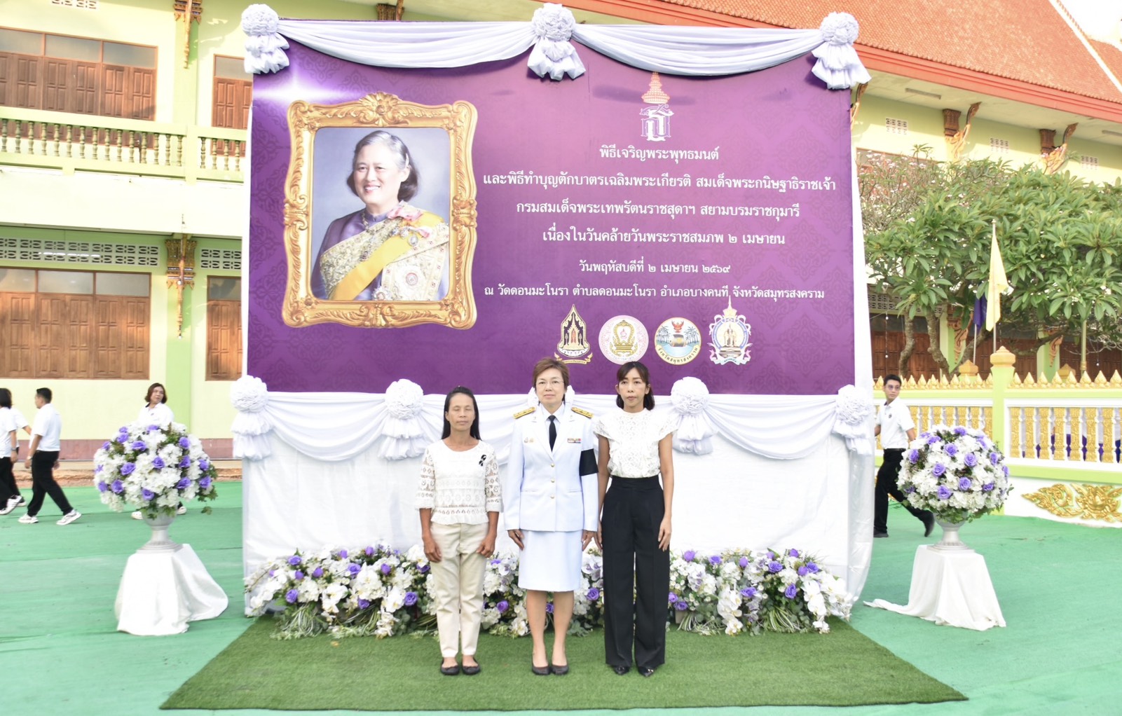 นางสาวลัดดาวัลย์ สันติภิญโญเลิศ อุตสาหกรรมจังหวัดสมุทรสงคราม พร้อมด้วย เจ้าหน้าที่สำนักงานอุตสาหกรรมจังหวัด เข้าร่วมพิธีเจริญพระพุทธมนต์และพิธีทำบุญตักบาตรเฉลิมพระเกียรติสมเด็จพระกนิษฐาธิราชเจ้า กรมสมเด็จพระเทพรัตนราชสุดาฯ สยามบรมราชกุมารี เนื่องในวันคล้ายวันพระราชสมภพ 2 เมษายน โดยมี นายชยชัย แสงอินทร์ ผู้ว่าราชการจังหวัดสมุทรสงคราม เป็นประธานในพิธี พร้อมด้วย นายกรกฎ วงษ์สุวรรณ นายรนัสถ์ชัย พุ่มเจริญ รองผู้ว่าราชการจังหวัดสมุทรสงคราม หัวหน้าส่วนราชการ หัวหน้าหน่วยงานรัฐวิสาหกิจ เจ้าหน้าที่ และประชาชนเข้าร่วมพิธีดังกล่าว เพื่อร่วมกันแสดงออกถึงความจงรักภักดี และ น้อมสำนึกในพระมหากรุณาธิคุณของสมเด็จพระกนิษฐาธิราชเจ้ากรมสมเด็จพระเทพรัตนราชสุดาฯ สยามบรมราชกุมารี เกิดความรัก ความภาคภูมิใจ และความหวงแหน นำไปสู่ความตระหนักในคุณค่า ความศรัทธาที่มั่นคง และความสามัคคี ในการธำรงรักษาไว้ซึ่งสถาบันพระมหากษัตริย์ ณ วัดดอนมะโนรา อำเภอบางคนที จังหวัดสมุทรสงคราม