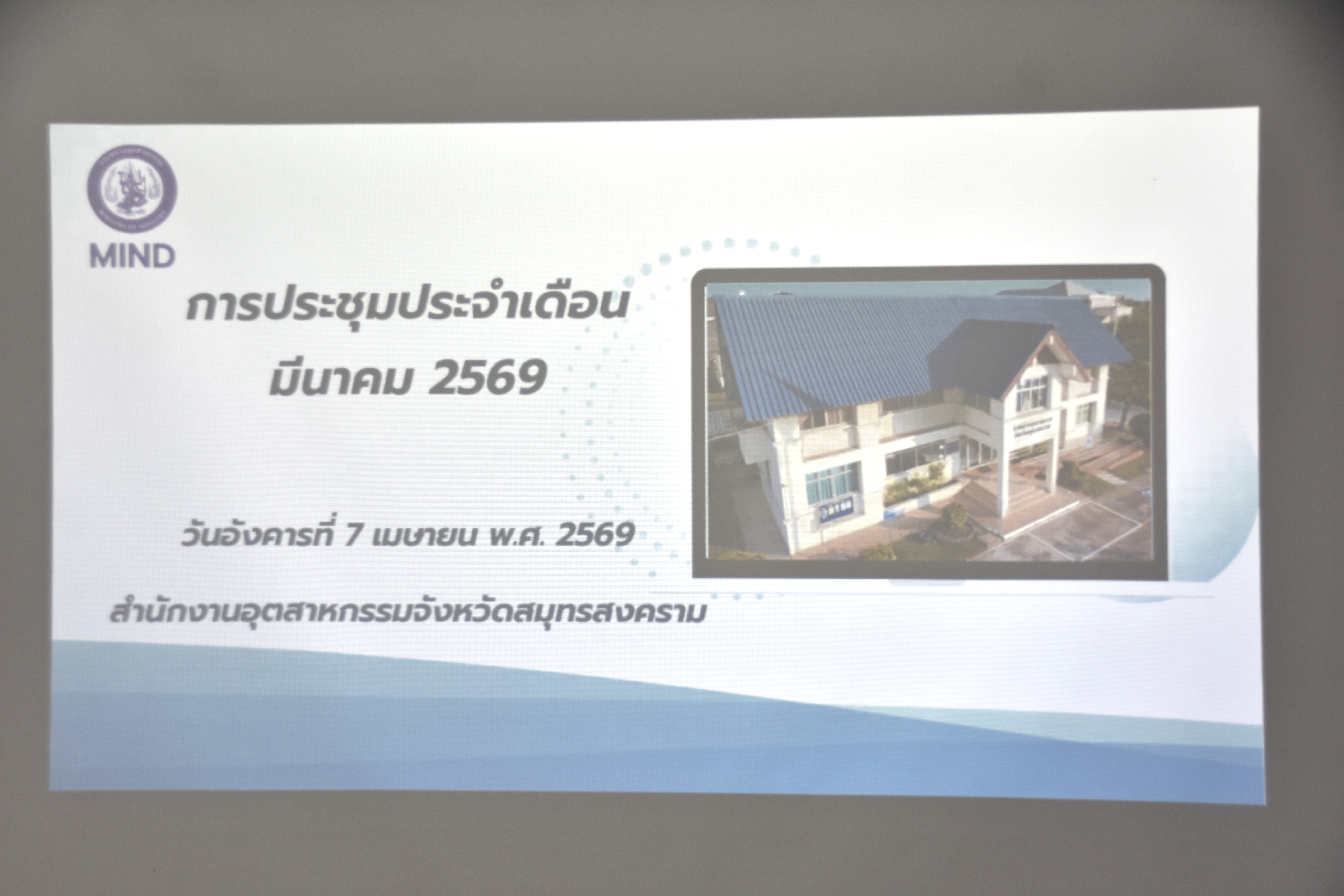 นางสาวลัดดาวัลย์ สันติภิญโญเลิศ อุตสาหกรรมจังหวัดสมุทรสงคราม พร้อมด้วย ข้าราชการ พนักงานราชการ และเจ้าหน้าที่สำนักงานอุตสาหกรรมจังหวัดสมุทรสงคราม เข้าร่วมประชุมสำนักงานอุตสาหกรรมจังหวัดสมุทรสงคราม ประจำเดือนมีนาคม 2569 ครั้งที่ 3/2569 เพื่อชี้แจงนโยบายการดำเนินงานและติดตามผลการดำเนินงานโครงการ/กิจกรรมของกลุ่มนโยบายและแผนงาน กลุ่มโรงงานอุตสาหกรรม และกลุ่มส่งเสริมและพัฒนาอุตสาหกรรม ให้บรรลุตามวัตถุประสงค์ ณ ห้องประชุม ชั้น 2 สำนักงานอุตสาหกรรมจังหวัดสมุทรสงคราม