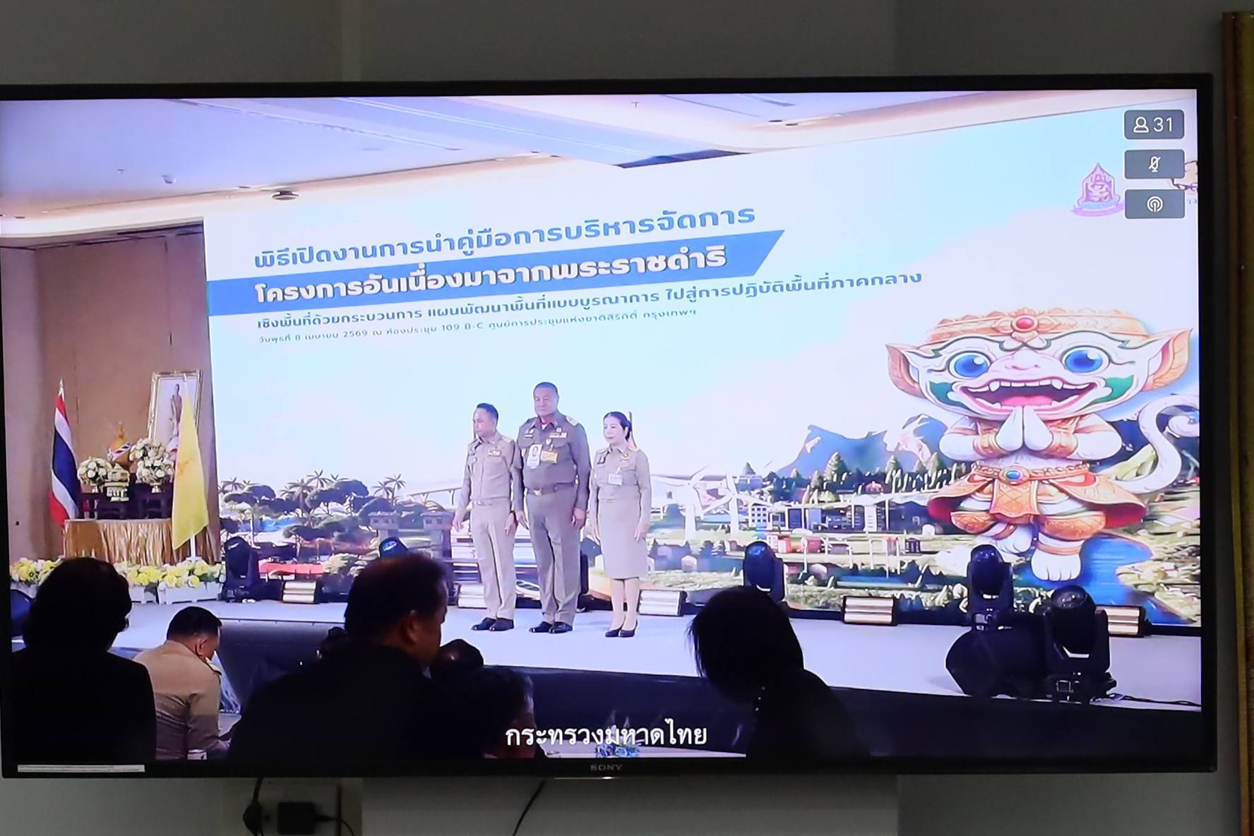 นางสาวลัดดาวัลย์ สันติภิญโญเลิศ อุตสาหกรรมจังหวัดสมุทรสงคราม มอบหมายให้ นายธนาธิป เพชรสุด หัวหน้ากลุ่มนโยบายและแผนงาน เข้าร่วมพิธีเปิดงานการนำคู่มือการบริหารจัดการโครงการอันเนื่องมาจากพระราชดำริเชิงพื้นที่ ด้วยกระบวนการ One Plan มาสนับสนุนการดำเนินงานโครงการอันเนื่องมาจากพระราชดำริ เขตพื้นที่ภาคกลาง ผ่านระบบวีดิทัศน์ทางไกล โดยมีนายพลากร สุวรรณรัฐ องคมนตรี เป็นประธาน ผ่านระบบวีดิทัศน์ทางไกล (VCS) และ มีนายชยชัย แสงอินทร์ ผู้ว่าราชการจังหวัดสมุทรสงคราม พร้อมด้วย นายกรกฎ วงษ์สุวรรณ รองผู้ว่าราชการจังหวัดสมุทรสงคราม และหน่วยงานที่เกี่ยวข้องเ ข้าร่วมพิธีเปิดงาน เพื่อรับทราบแนวทางการดำเนินงานและสนับสนุนการขับเคลื่อนโครงการให้เป็นไปอย่างมีประสิทธิภาพ และในโอกาสนี้ นายชยชัย แสงอินทร์ ผู้ว่าราชการจังหวัดฯ ได้เน้นย้ำความสำคัญของโครงการอันเนื่องมาจากพระราชดำริทั้ง 9 โครงการในพื้นที่ ซึ่งครอบคลุมด้านการจัดการน้ำ ทรัพยากร และอาชีพ พร้อมกำชับให้ทุกหน่วยงานที่เกี่ยวข้องร่วมกันติดตามดูแล และสนับสนุนภารกิจอย่าง ต่อเนื่อง เพื่อให้โครงการขับเคลื่อนได้อย่างมีประสิทธิภาพ และ เกิดประโยชน์สูงสุดต่อประชาชนอย่างยั่งยืนสืบไป ณ ห้องประชุมอัมพวา ชั้น 4 ศาลากลางจังหวัดสมุทรสงคราม