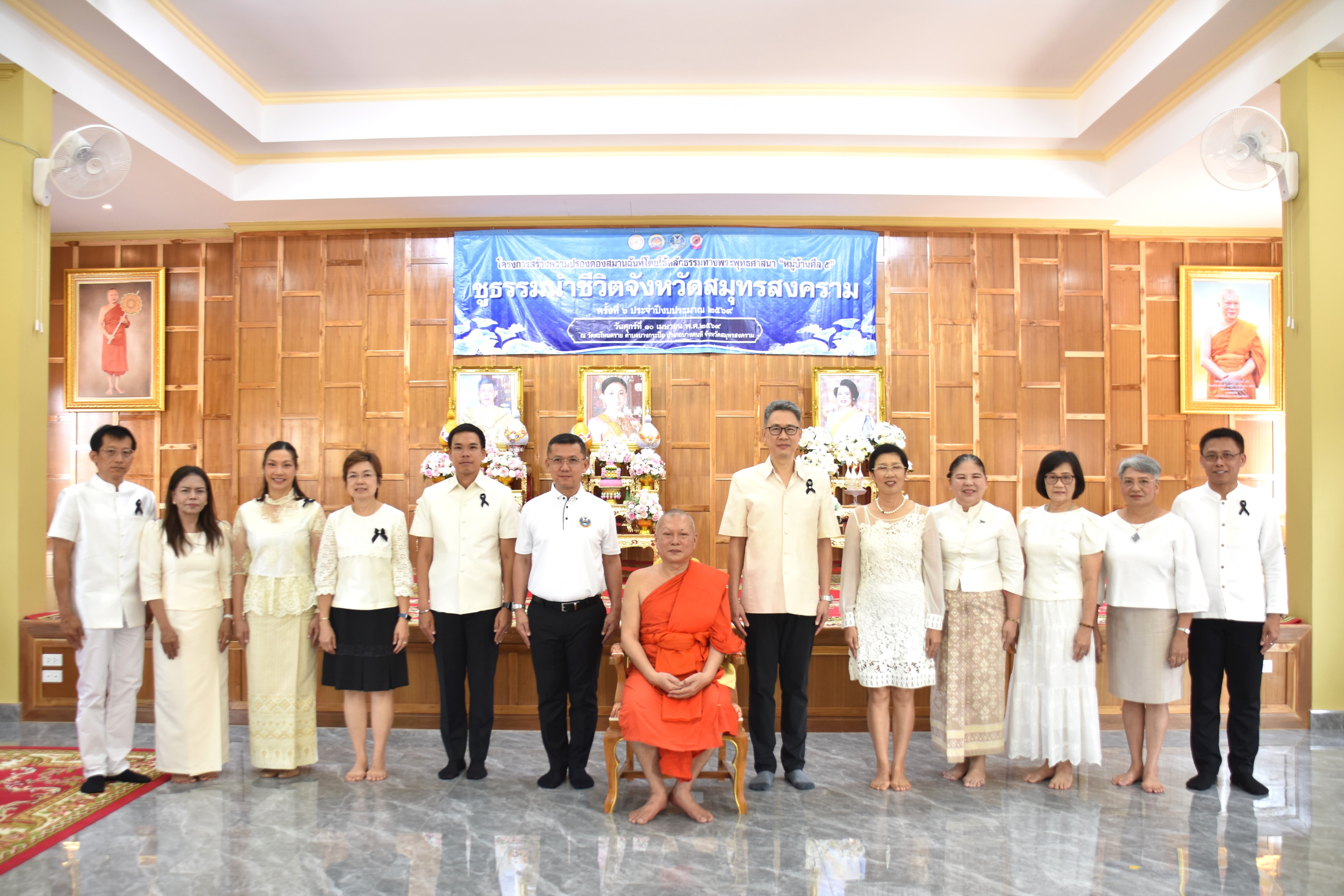 นางสาวลัดดาวัลย์ สันติภิญโญเลิศ อุตสาหกรรมจังหวัดสมุทรสงคราม พร้อมด้วย นายธนาธิป เพชรสุด หัวหน้ากลุ่มนโยบายและแผนงาน และเจ้าหน้าที่สำนักงานอุตสาหกรรมจังหวัด เข้าร่วมโครงการชูธรรมนำชีวิตจังหวัดสมุทรสงคราม ประจำปีงบประมาณ พ.ศ. 2569 ครั้งที่6 (แรม 8 ค่ำ เดือน 5) โดยมี นายชยชัย แสงอินทร์ ผู้ว่าราชการจังหวัดสมุทรสงคราม เป็นประธานในพิธี พร้อมด้วย นายกรกฎ วงษ์สุวรรณ นายรนัสถ์ชัย พุ่มเจริญ รองผู้ว่าราชการจังหวัดสมุทรสงคราม หัวหน้าส่วนราชการ หัวหน้าหน่วยงานรัฐวิสาหกิจ เจ้าหน้าที่ และประชาชนเข้าร่วมกิจกรรมดังกล่าว ซึ่งกิจกรรมประกอบด้วยการทำบุญ ตักบาตร การไหว้พระ การสวดมนต์ การแสดงตนเป็นพุทธมามกะ การสมาทานศีล การถวายสังฆทาน การบรรยายธรรม และการเจริญจิตตภาวนา ณ วัดตะโหนดราย ตำบลบางกระบือ อำเภอบางคนที จังหวัดสมุทรสงคราม