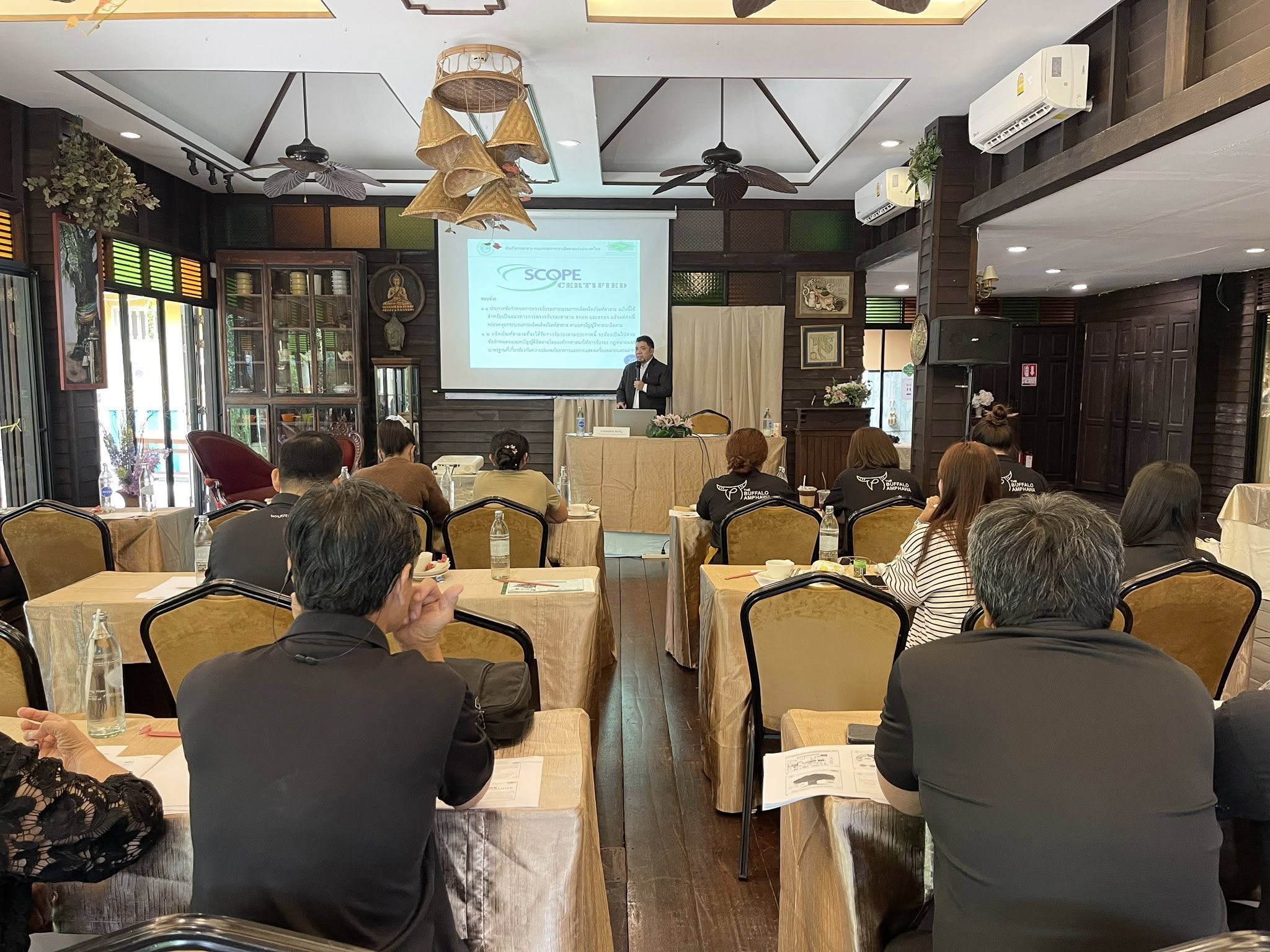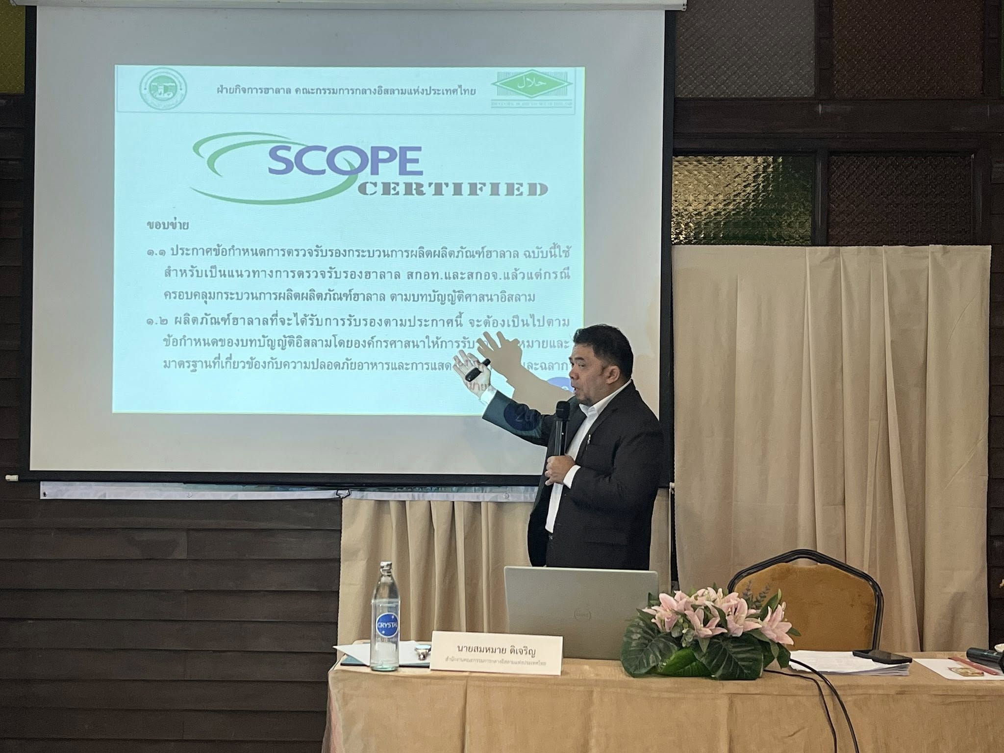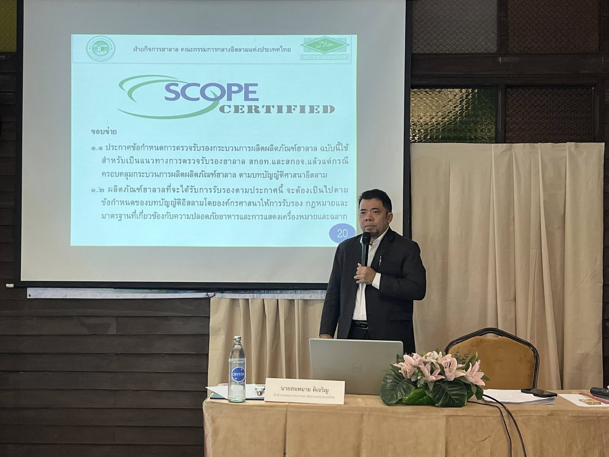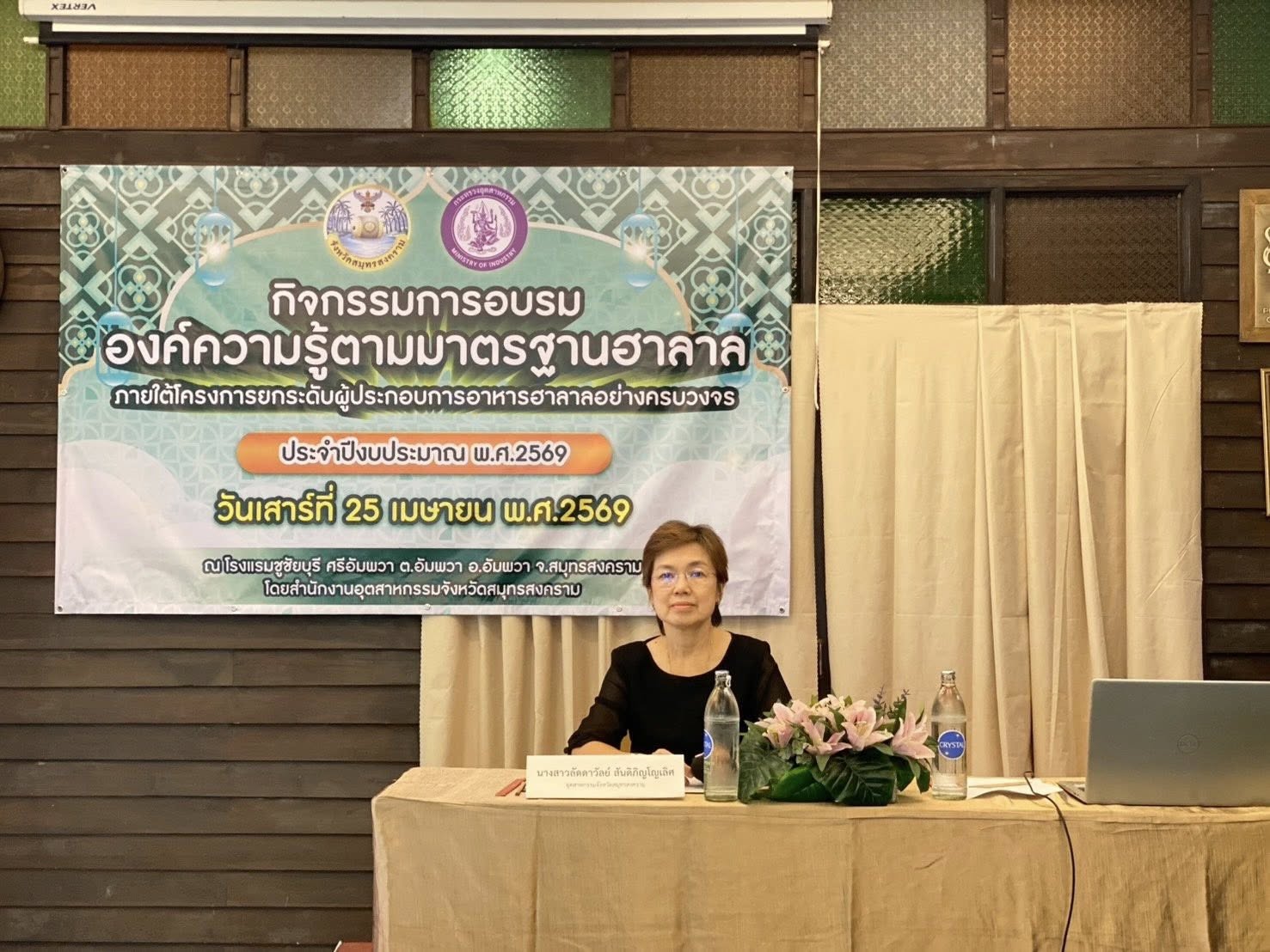 นางสาวลัดดาวัลย์ สันติภิญโญเลิศ อุตสาหกรรมจังหวัดสมุทรสงคราม เป็นประธานเปิดกิจกรรมการอบรมให้องค์ความรู้ตามมาตรฐานฮาลาล ภายใต้โครงการยกระดับผู้ประกอบการอาหารฮาลาลอย่างครบวงจร ประจำปีงบประมาณ พ.ศ. 2569 พร้อมด้วย นางเกสรา ไชยรส หัวหน้ากลุ่มส่งเสริมและพัฒนาอุตสาหกรรม และเจ้าหน้าที่กลุ่มส่งเสริมและพัฒนาอุตสาหกรรม โดยมี ผศ.ดร.วิชัย รุ่งเรืองอนันต์ จากมหาวิทยาลัยเทคโนโลยีพระจอมเกล้าพระนครเหนือ เป็นผู้กล่าวรายงานวัตถุประสงค์ของโครงการอบรม เพื่อยกระดับผู้ประกอบการ/วิสาหกิจรายย่อยทั้งภาคการผลิต ผลิตภัณฑ์และบริการฮาลาล ประเภทอาหารและไม่ใช่อาหารเข้าสู่ระบบมาตรฐานฮาลาล การให้ความรู้ด้านการผลิตหรือการทำร้านอาหาร การบริการให้ถูกสุขลักษณะ และสอดคล้องกับมาตรฐานฮาลาล เพื่อส่งเสริมองค์ความรู้ และการพัฒนาผลิตภัณฑ์ ฉลาก และบรรจุภัณฑ์ให้เกิดผลิตภัณฑ์ใหม่ให้สอดคล้องกับมาตรฐานฮาลาล และเพื่อเพิ่มช่องทางการตลาดให้กับผู้ประกอบการ ผ่านตลาดออนไลน์ที่รองรับตลาดต่างประเทศ ทั้งนี้มีการบรรยายในหัวข้อ อาหารฮาลาลและแนวทางปฏิบัติเพื่อการอุตสาหกรรม ภายใต้ระเบียบ ปี พ.ศ. 2558 ข้อบังคับข้อกำหนดฯ ปี พ.ศ. 2559 และประกาศฝ่ายกิจการฮาลาล คณะกรรมการกลางอิสลามแห่งประเทศไทย โดย อาจารย์สมหมาย ดิเจริญ นักวิชาการฝ่ายกิจการฮาลาล สกอท. โดยมีกลุ่มเป้าหมายเป็นผู้ประกอบการ ภาคการผลิตผลิตภัณฑ์อาหาร ภาคบริการ (ร้านอาหาร) เข้าร่วมการอบรมจำนวน 21 ราย ณ โรงแรมชูชัยบุรี ศรีอัมพวา ตำบลอัมพวา อำเภออัมพวา จังหวัดสมุทรสงคราม