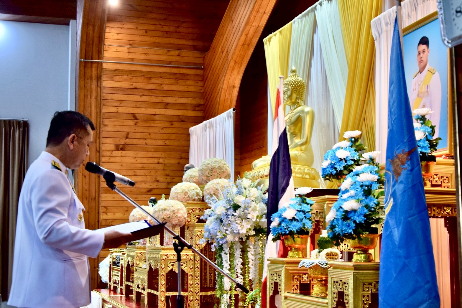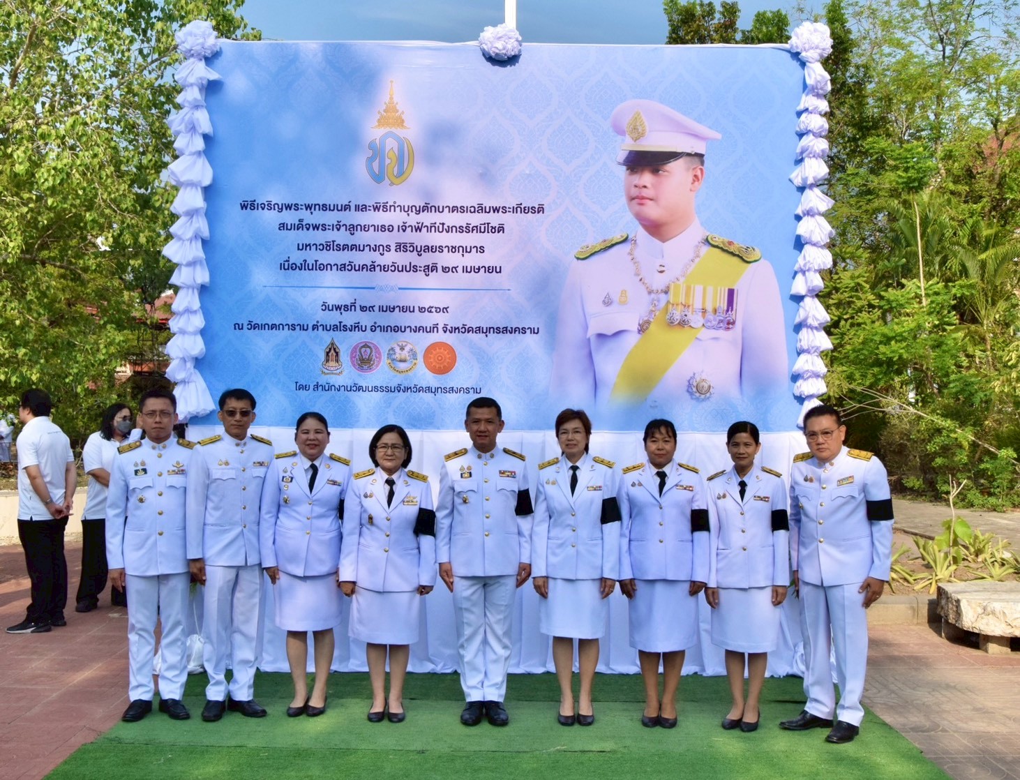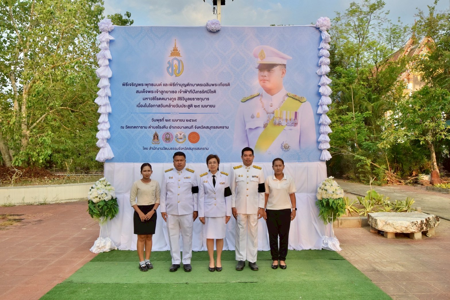 นางสาวลัดดาวัลย์ สันติภิญโญเลิศ อุตสาหกรรมจังหวัดสมุทรสงคราม พร้อมด้วย เจ้าหน้าที่สำนักงานอุตสาหกรรมจังหวัด เข้าร่วมพิธีเจริญพระพุทธมนต์และพิธีทำบุญตักบาตรเฉลิมพระเกียรติสมเด็จพระเจ้าลูกยาเธอ เจ้าฟ้าทีปังกรรัศมีโชติ มหาวชิโรตตมางกูร สิริวิบูลยราชกุมาร เนื่องในโอกาสวันคล้าย วันประสูติ 29 เมษายน โดยมี นายชยชัย แสงอินทร์ ผู้ว่าราชการจังหวัดสมุทรสงคราม เป็นประธานในพิธี พร้อมด้วย นายกรกฎ วงษ์สุวรรณ นายรนัสถ์ชัย พุ่มเจริญ รองผู้ว่าราชการจังหวัดสมุทรสงคราม หัวหน้าส่วนราชการ หัวหน้าหน่วยงานรัฐวิสาหกิจ เจ้าหน้าที่ และประชาชนเข้าร่วมพิธีดังกล่าว เพื่อร่วมกันแสดงออกถึงความจงรักภักดี และน้อมสำนึกในพระมหากรุณาธิคุณของสมเด็จพระเจ้าลูกยาเธอ เจ้าฟ้าทีปังกรรัศมีโชติ มหาวชิโรตตมางกูร สิริวิบูลยราชกุมาร เกิดความรัก ความภาคภูมิใจ และความหวงแหน นำไปสู่ความตระหนักในคุณค่า ความศรัทธาที่มั่นคง และความสามัคคี ในการธำรงรักษาไว้ซึ่งสถาบันพระมหากษัตริย์ ณ วัดเกตการาม ตำบลโรงหีบ อำเภอบางคนที จังหวัดสมุทรสงคราม
